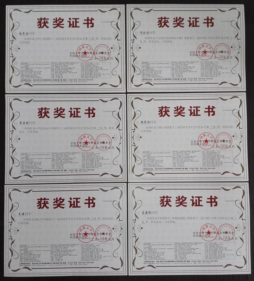 在2016年7月举行的“第十二届全国老员工文学作品大赛”中,公司同学取得了优异的成绩和丰硕的成果,特向获奖同学表示热烈的祝贺,向各位辛勤付出的老师表示衷心的感谢!希望公司师生再接再厉,志存高远,为公司增光添彩!
